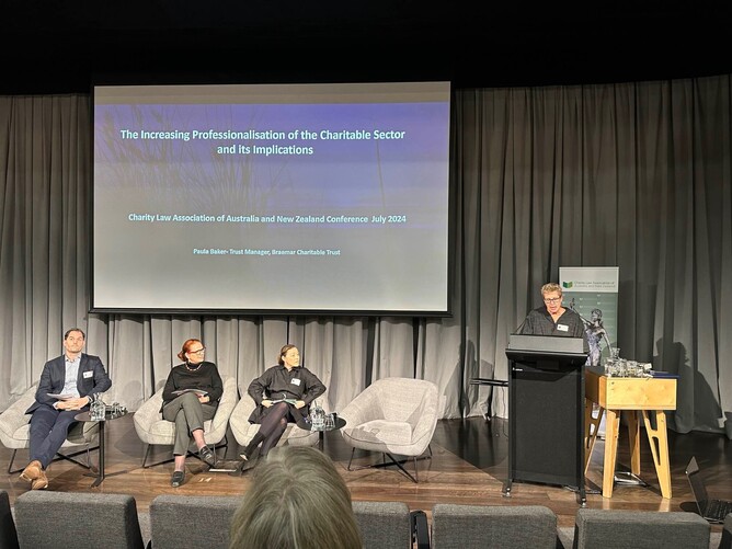 Last week Paula Baker, Trust Manager Braemar Charitable Trust attended the Charity Law Association of Australia and New Zealand (CLAANZ) Annual Conference on Global Issues Facing Charities held in Wellington on 4th and 5th July. Paula was lucky enough to be awarded the CLAANZ Interdisciplinary Dialogue Presentation Grant and presented a paper on the Increasing Professionalisation of the Charitable Sector and it’s Implications. The Association’s aim is to provide a forum for professionals, academics and charity and not-for-profit (NFP) employees or volunteers who have an interest in charity and NFP law to increase their knowledge in this area and, as a consequence, raise the standard of legal assistance provided to charities and NFP organisations. This education is provided through seminars and conferences conducted by members as well as international and Australian guest speakers. It was a great opportunity to meet with Charity Lawyers, Accountants and leaders from across New Zealand Australia working in and with For Purpose charitable organisations.
